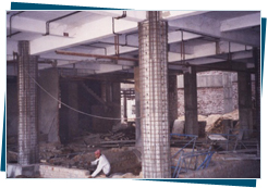 Reinforcement was tied to the existing square column (600mm*600mm) to make it round